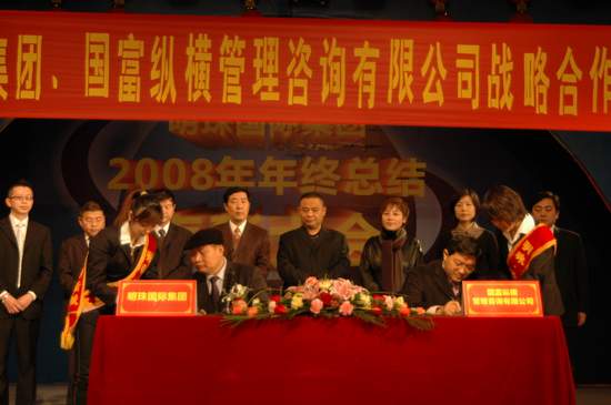1月23日,國富縱橫總裁趙龍博士、策劃總監(jiān)周楊博士在明珠集團總部與明珠集團董事長李繼和先生等高層領導一起出席了盛大而隆重的明珠集團、國富縱橫管理咨詢有限公司戰(zhàn)略合作簽約儀式。國富縱橫和明珠集團都對此次合作充滿了信心,愿意為西部家居事業(yè)的發(fā)展做出很大的努力。